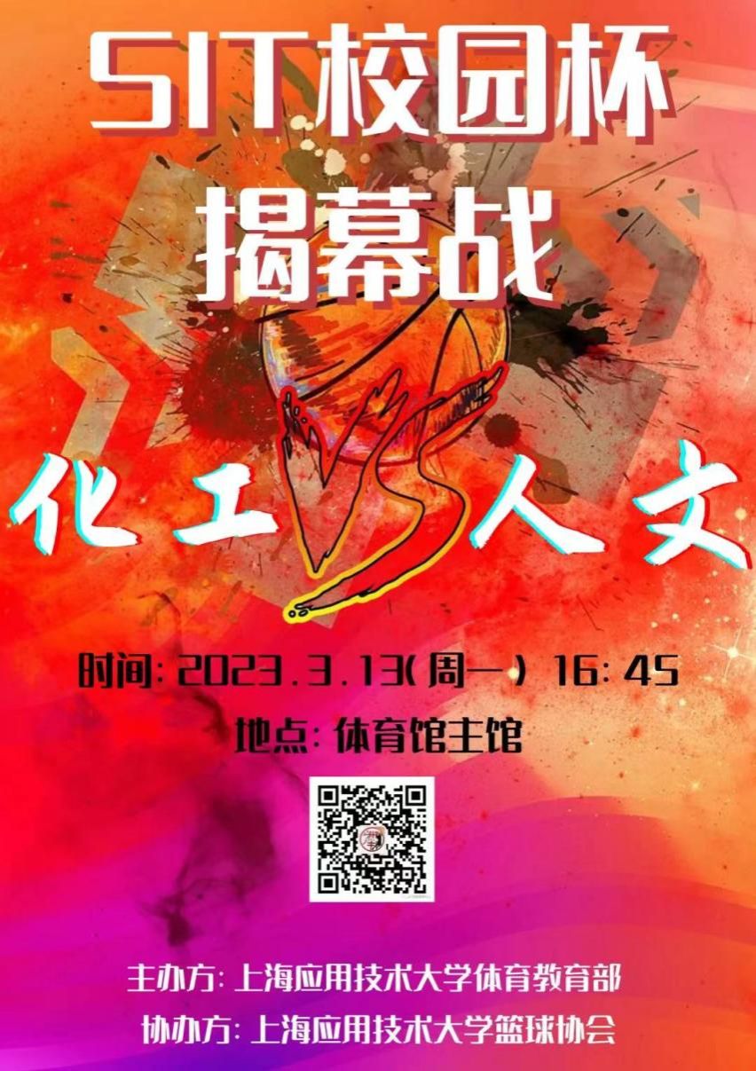 2023313日下午1645分,由上海应用技术大学体育教育部主办、篮球协会协办的SIT校园杯揭幕战——化工学院对战人文学院篮球赛在体育馆主馆举办,为体育文化节火热开头。双方队员全场手感火热,配合默契,在赛场上赛出风格、赛出水平,为大家呈现了一场精彩纷呈的比赛。最终人文学院以6663战胜化工学院,取得本次比赛的胜利。
