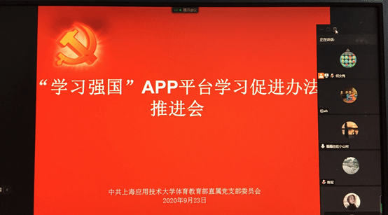 为落实好“学习强国”学习平台的推广使用,直属党支部特意制定《进一步加强“学习强国”APP平台学习的促进办法》,以3-5人为一个学习小组,设立一名组长,负责本群党员学习情况的统计和日常督促。同时通过加大宣传推广力度,实现体教部所有党员全覆盖,有效提高广大党员的思想觉悟、文明素质、科学素养。