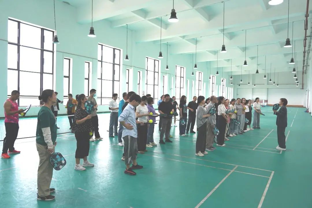 在实践环节中,大家自由组队,展开趣味对抗赛。场上,教职工们现学现用,或来回击球,或网前接挡,精彩纷呈;场边,观战的老师加油助威,笑声不断。教职工们在轻松愉快的氛围中不仅掌握了匹克球的基本技能,还通过运动增进了彼此的交流与友谊。