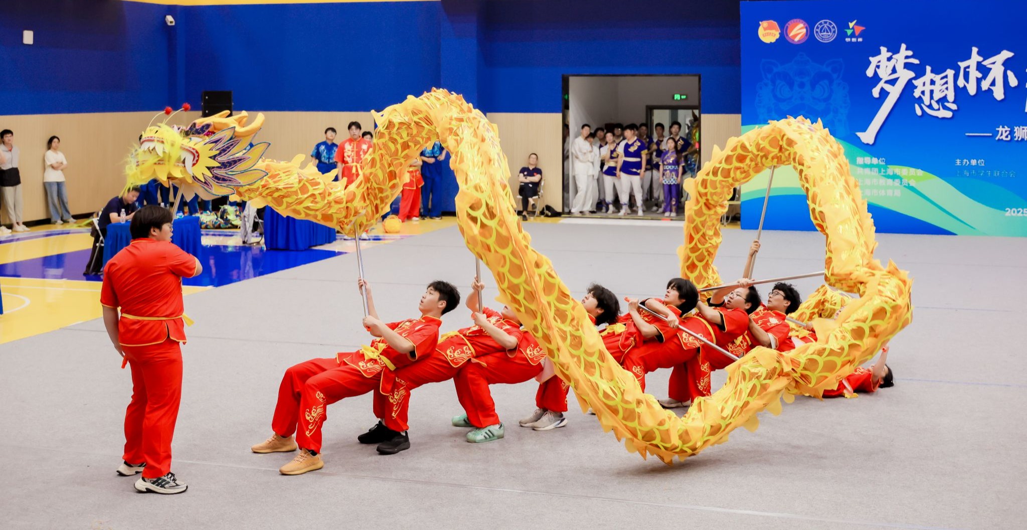 在“梦想杯”上海学子体育大联赛舞龙自选项目中,我校舞龙队荣获三等奖。这支由14名队员组成的队伍在团委教师陈贝妮和教练郑冬华的带领下,通过系统性训练提升竞技水平。比赛中队员们以整齐的动作和创意编排展现传统舞龙技艺,龙形变换流畅,节奏把握精准,充分体现中华传统文化魅力。