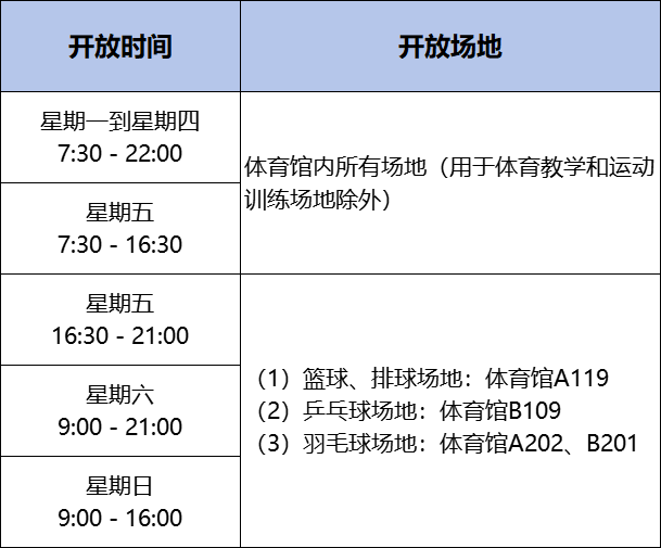奉贤校区体育馆室内场馆的开放作以下安排: