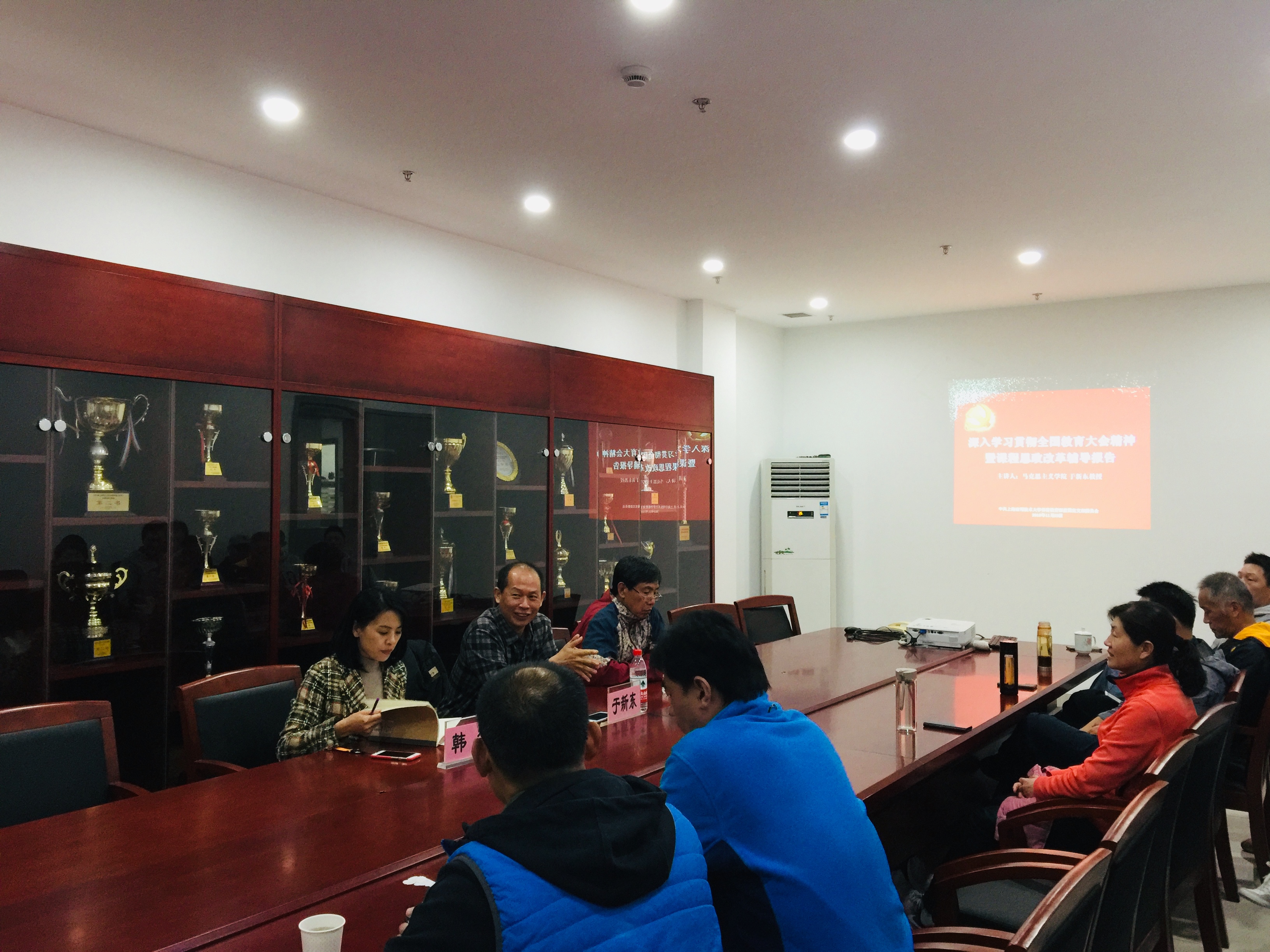 与会教师积极发言表示,将以本次辅导报告会为契机,认真学习领会和贯彻落实习近平总书记重要讲话精神,以习近平新时代中国特色社会主义思想为指导,将总书记的讲话精神贯彻到日常的教学、训练中,履行好教书育人职责,培养增强学生的“四个自信”,并助推学生成长成才。党员干部表示要坚持贯彻党的教育方针,落实立德树人的根本任务,利用课程思政改革契机,真正做好人类灵魂的工程师角色。