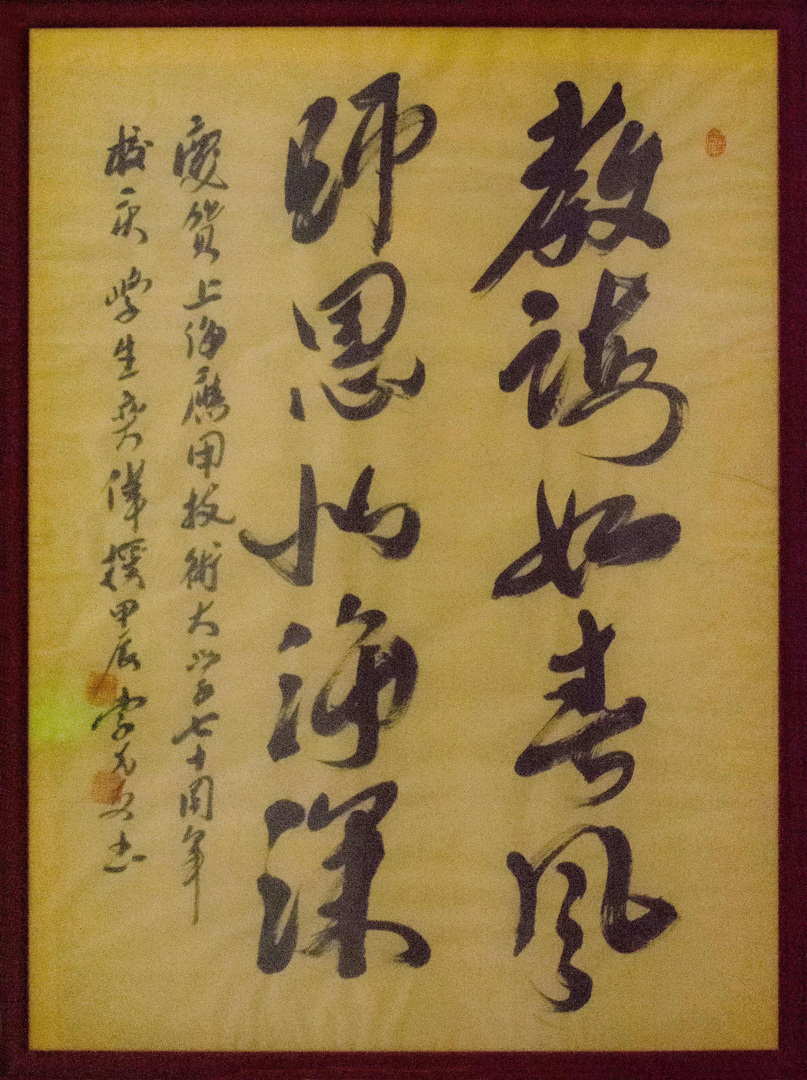 2006级化学工程学院校友奕伟——校武术运动队成员,敬赠母校体育教育部教练员。
