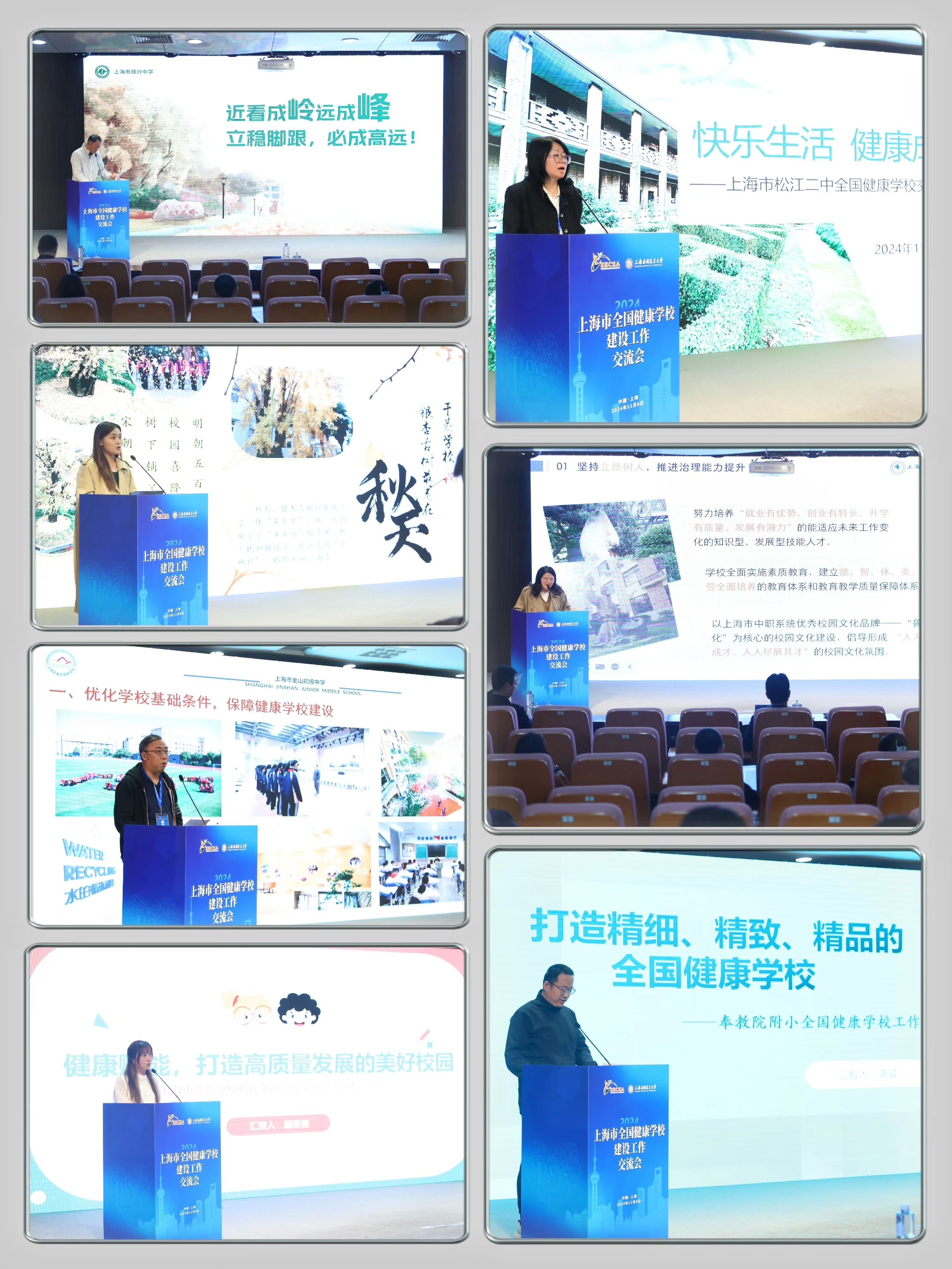 上海市全国健康学校建设单位一共有25所学校,其中高校8所,中小学17所。上午会议有6所学校代表进行了发言。