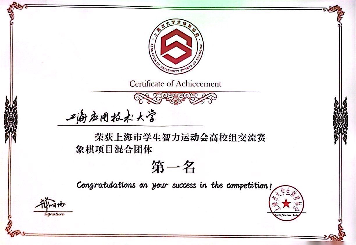 五月的花绽放火热的激情,五月的风绽放蓬勃的力量,上海应用技术大学的学子在赛场上发挥自己的聪明才智,在棋盘上大显身手。2023520日由上海市教育委员会、上海市体育局主办的上海市学生智力运动会高校组交流赛圆满落幕。在此次比赛中,体教部郑冬华老师、余迅老师带队,我校学子积极参与象棋、国际象棋、五子棋竞赛项目,共计12人参赛,获得了优秀的成绩。