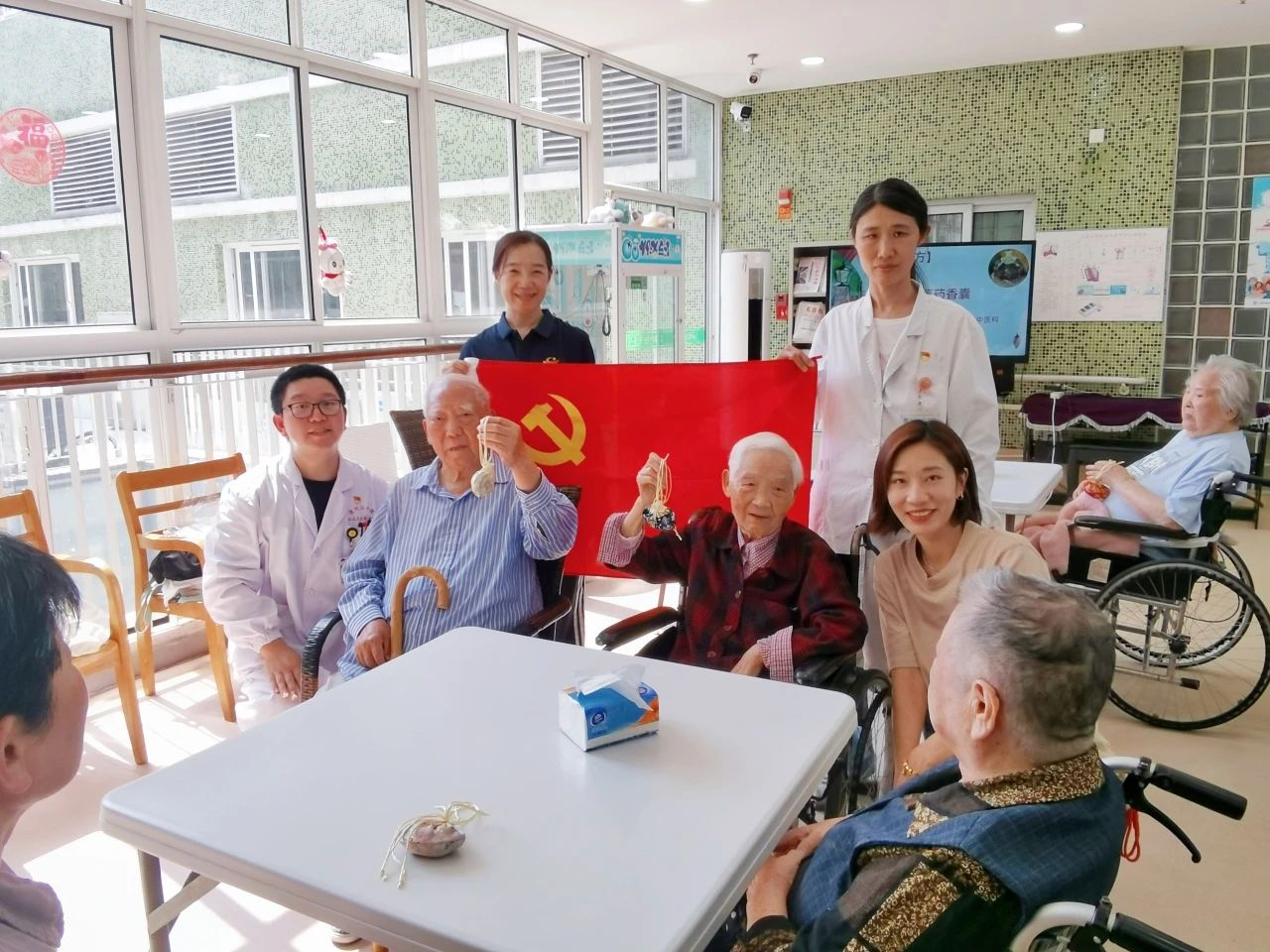 在端午节这个传承千年的传统节日里,漕河泾街道“医暖桑榆”青年为老志愿服务队联合上海行健职业学院、上海应用技术大学体教部、上海美竹兰水上俱乐部的师生志愿者们参与,在漕河泾长照之家和乐缘养老院分别举办了特色活动,为社区长者们带去了节日的欢乐和温暖。