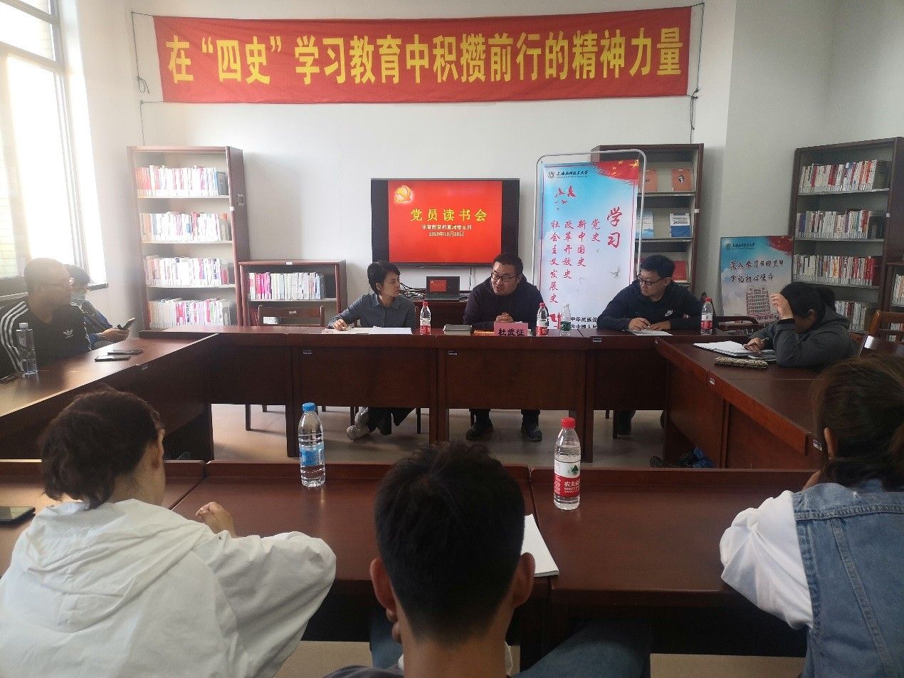 10月31日下午,直属党支部在图书馆A604四史学习教育专题阅览室开展党员读书会,特邀马克思主义学院的教师杜武征博士做了四史学习教育之社会主义发展史的辅导报告。