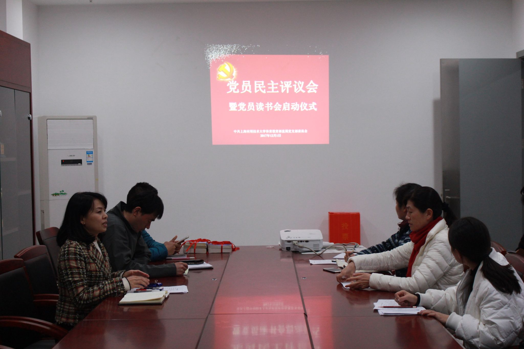 会上,两位党小组长分别宣读了首批阅读书籍的名师推荐导言。体教部全体党员及教工入党积极分子参加。“党员读书会”还将通过建立流动书架、图书角,读一本好书、推荐一本好书、每位党员向党组织捐一本好书、开展读书交流微信群等系列活动。同时,直属党支部书记韩磊向全体党员报告直属党支部一年来的工作,她从开展系列党建活动、促进基层党支部建设、推进制度建设、严格党员民主评议工作、推进体教部中心工作、发挥党员战斗堡垒作用、发挥“凝聚人心”作用、经费使用情况等方面进行汇报。全体党员对直属党支部工作事项逐一认真开展评议。