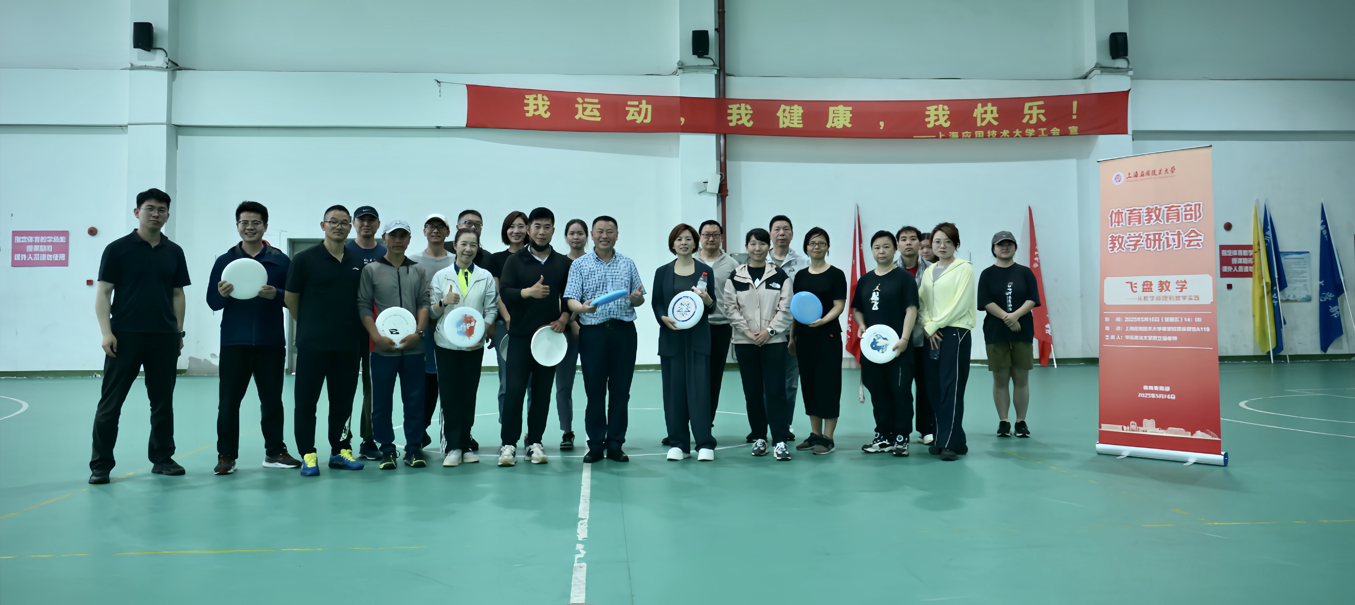 516日,体教部举办了飞盘课程专项业务培训会议,会议邀请华东政法大学飞盘教练贾立强老师授课。体教部主任尹小俭、直属党支部书记韩磊、体教部全体教师和学生代表参与培训交流。培训会由体教部陈军老师主持,介绍我校体育工作开展情况,体育教学改革进展阶段,以及飞盘运动项目的教学优势和开课需求。