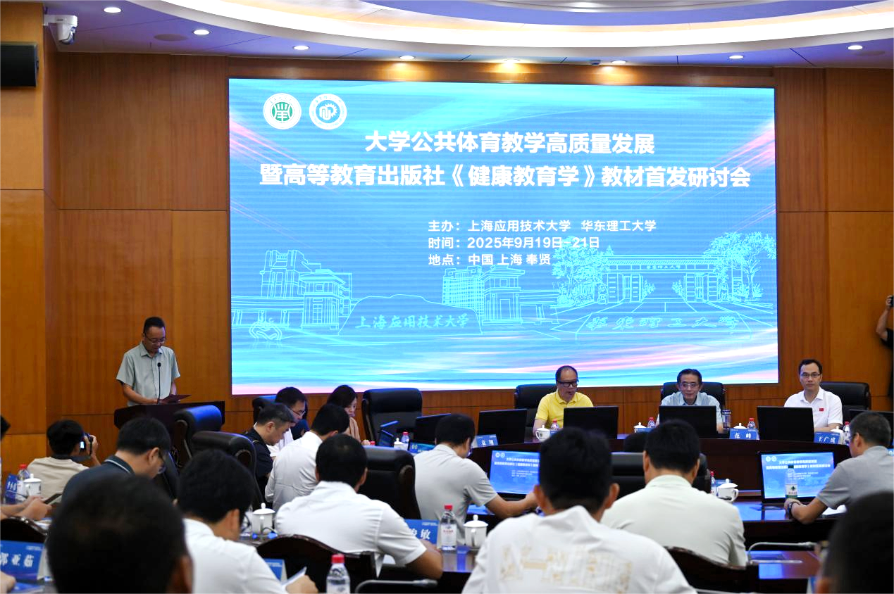 为深入贯彻落实《“健康中国2030”规划纲要》和《关于全面加强和改进新时代学校体育工作的意见》精神,深化大学公共体育教学改革,2025年9月20日,由上海应用技术大学体育教育部与华东理工大学体育科学与工程学院联合主办的“大学公共体育教学高质量发展暨《健康教育学》教材首发研讨会”在我校奉贤校区隆重举行。