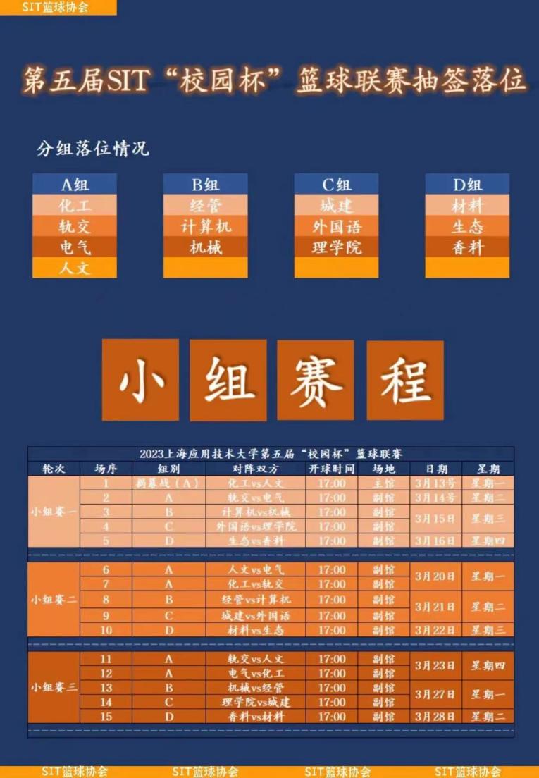 篮球联赛的小组赛程已经通过严格有序地抽签落位,分组情况如下: